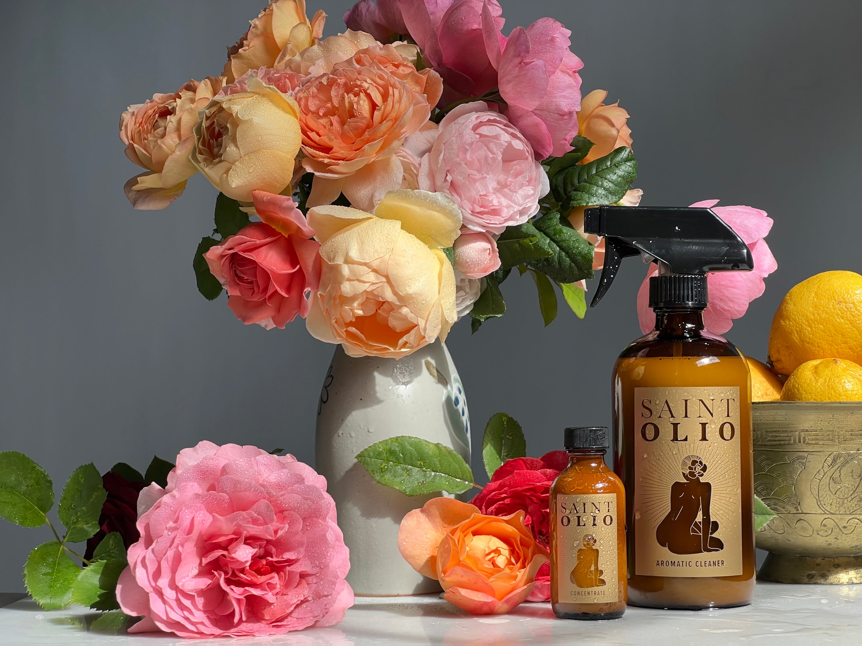 We absorb everything we come into contact with — good and bad. In our modern age there is an alarming amount of toxins found in everyday products, many of which are unregulated. Saint Olio creates a healthy and indulgent way to clean, fragrance and refresh using the power of what nature provides. Potent and naturally antimicrobial, essential oils also alter brain chemistry as their molecules hit the limbic system, uplifting our moods and calming our nervous systems. We carefully blend the highest quality botanicals to create luxurious, green aromatics that are not only pleasurable, but help make you and your environment healthier.